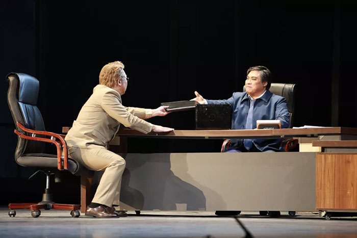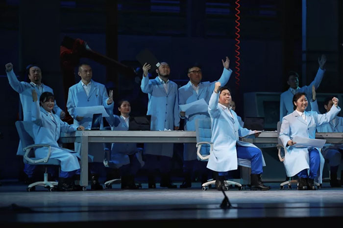 12月29日晚,中央歌剧院献礼中华人民共和国成立70周年之年度现实主义题材原创歌剧《道路》潍柴动力集团专场演出,在山东省潍坊市潍坊大剧院成功举行。中央歌剧院院长刘云志,副院长郑起朝、李丹阳,党委副书记、纪委书记王晓红,山东省委宣传部副部长、省电影局局长程守田,潍坊市委书记、市人大常委会主任惠新安,潍坊市委常委、宣传部部长初宝杰,潍坊市副市长王树华,山东重工集团党委书记、董事长,潍柴集团董事长谭旭光,潍柴集团党委书记、常务副总经理徐宏,潍柴集团副总经理陈大铨与潍柴动力集团一千四百余名员工,共同观看了演出。