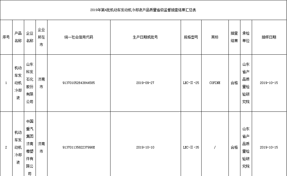 中国质量新闻网讯 2020年3月17日,山东省市场监督管理局网站公布2019年第4批机动车发动机冷却液产品质量省级监督抽查结果。信息显示,2019年第4季度,山东省市场监督管理局组织开展了机动车发动机冷却液产品质量省监督抽查。本次共抽查了全省15家企业生产的15批次机动车发动机冷却液产品。本次抽查所检项目合格。