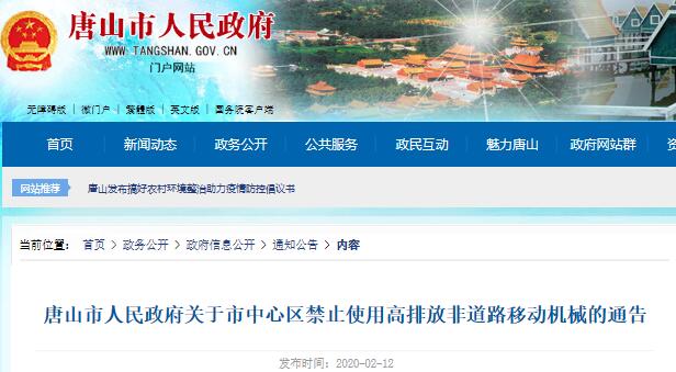 河北省唐山市人民政府2020年2月12日发布了“关于市中心区禁止使用高排放机动车的通告”,“通告”自2020年3月1日起施行。“通告”要求,禁止国四及以下排放标准的柴油货车进入禁用区;禁止有可见黑烟的机动车进入禁用区;属于禁用区禁行的车辆,公安部门不予办理车辆通行证。“通告”还规定了国四及以下排放标准的柴油货车绕行路线。