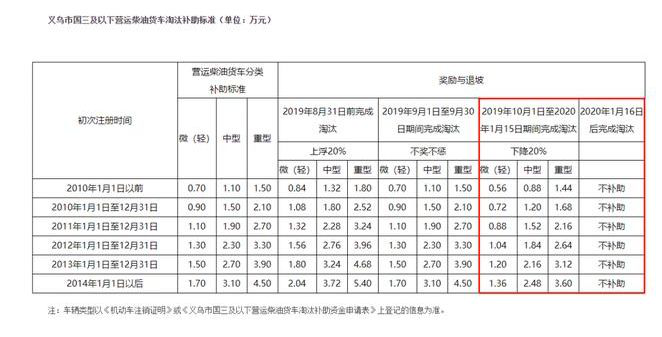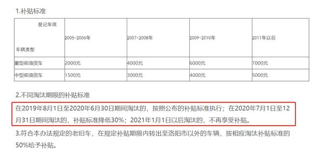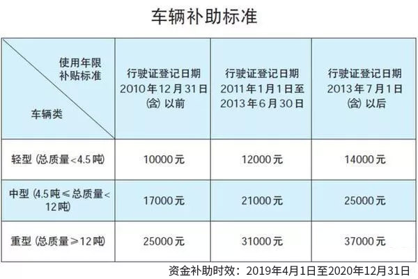 符合淘汰资金补贴标准的车辆:在长治市车辆管理部门登记注册的2013年7月1日前出厂的重型、中型、轻型柴油货车。申请期限:至2020年3月31日。