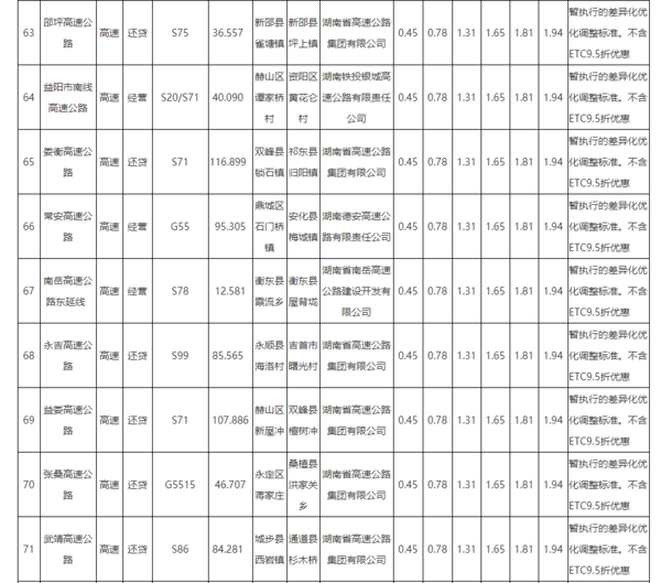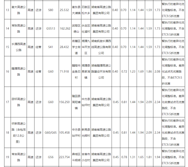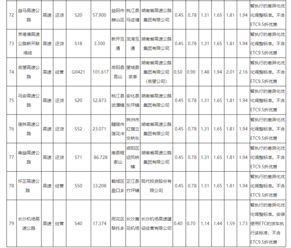 此前,湖南高速货车收费标准如下:湖南:调整高速公路货车通行费计费方式。