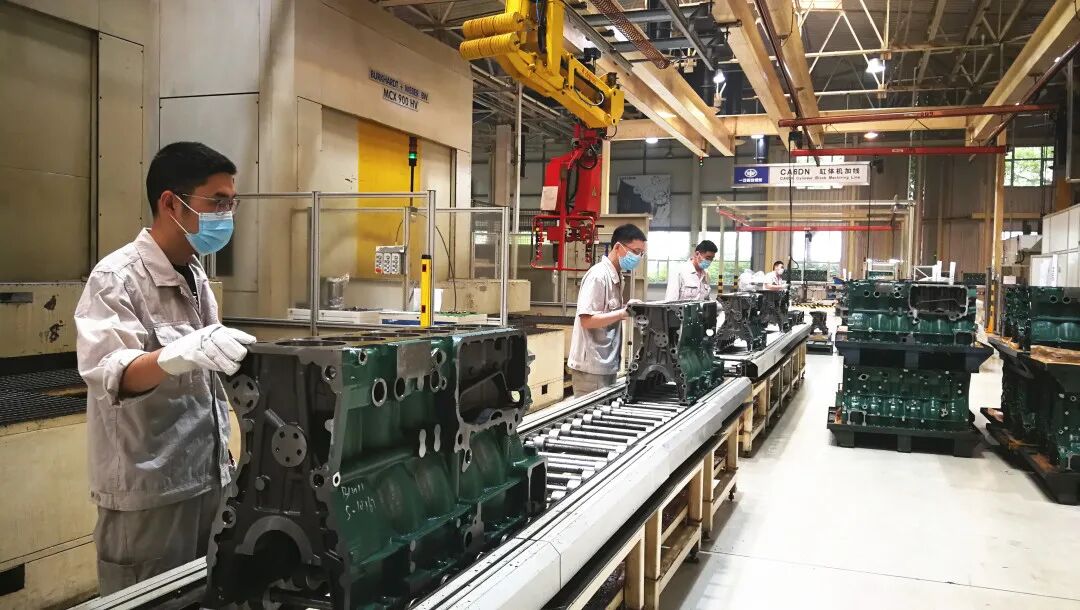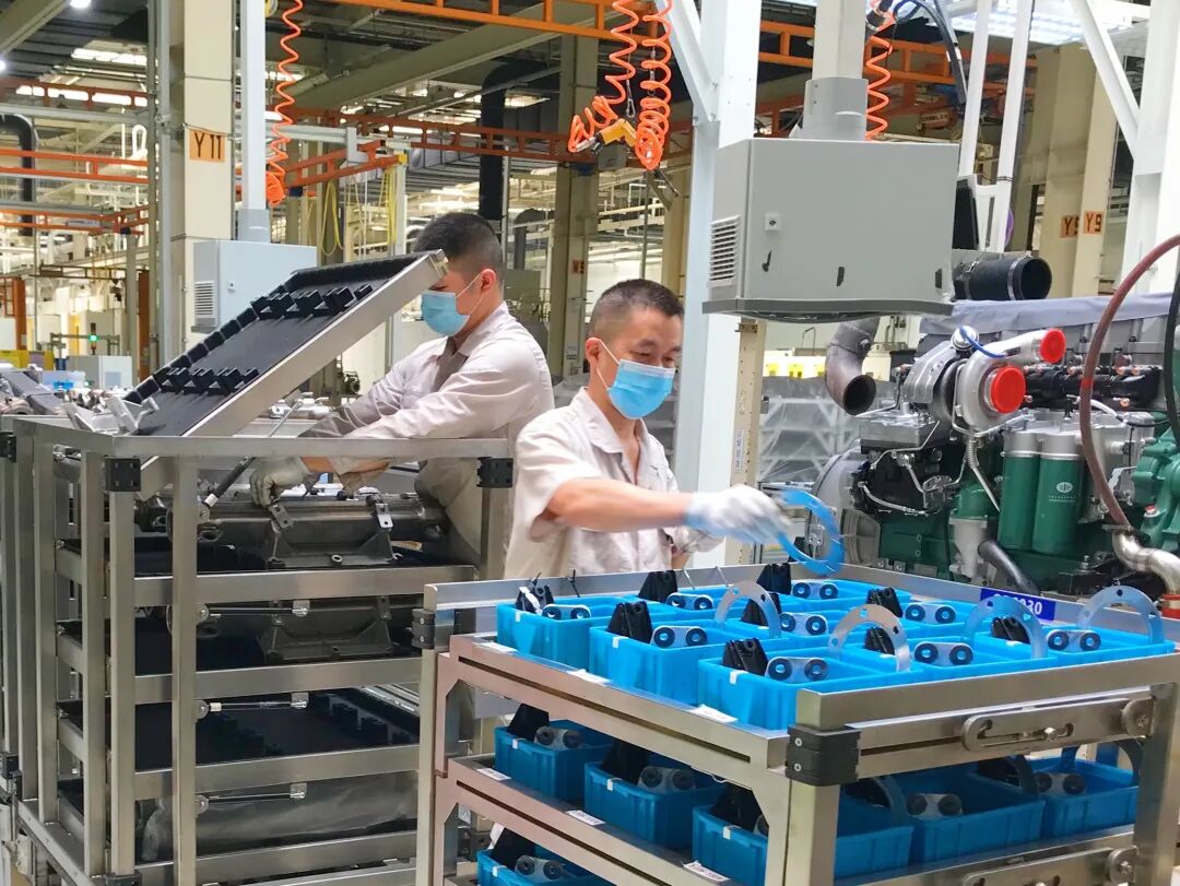 锡柴工厂重机部缸体线“五一”无休,以四班三运转满负荷的运转模式确保产量需求,装配线5月2日起,便开启了极限高产的常态化模式。