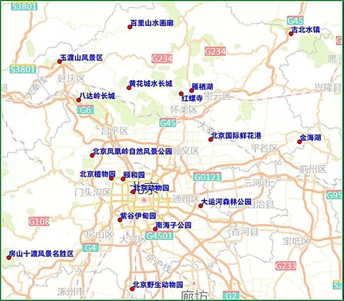 周末期间,预计市区周边大兴野生动物园、八达岭长城、古北水镇、百里画廊等公园景区将成为出游热点地区,京承高速、京藏高速、京平高速、西五环、西六环部分路段容易出现车流集中的情况。
