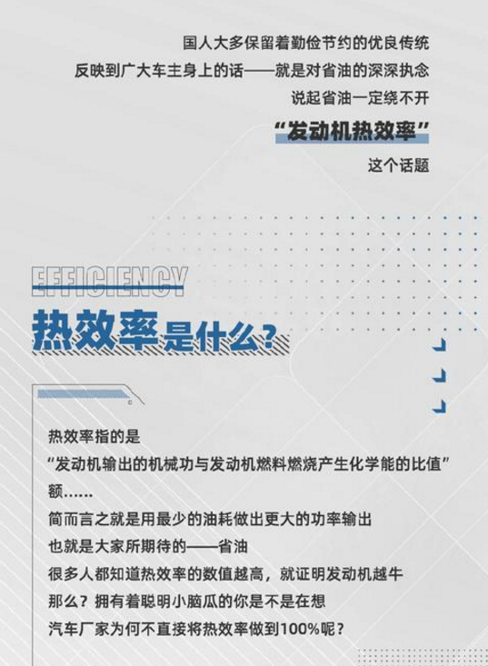 热效率越高的发动机,就能用更少的燃料做出更大的功率输出,也可以理解为省油。