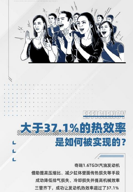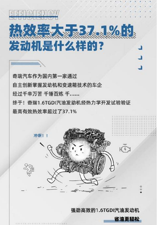 按照奇瑞官方的科普,目前大部分发动机的热效率为30%左右;35%可以算做优秀;达到37%能够算得上”蒂花之秀“;大于37.1%的只能用“一枝独秀”来形容。