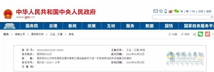 国家发展改革委、交通运输部《关于进一步降低物流成本的实施意见》已经国务院同意,现转发给你们,请认真贯彻执行。