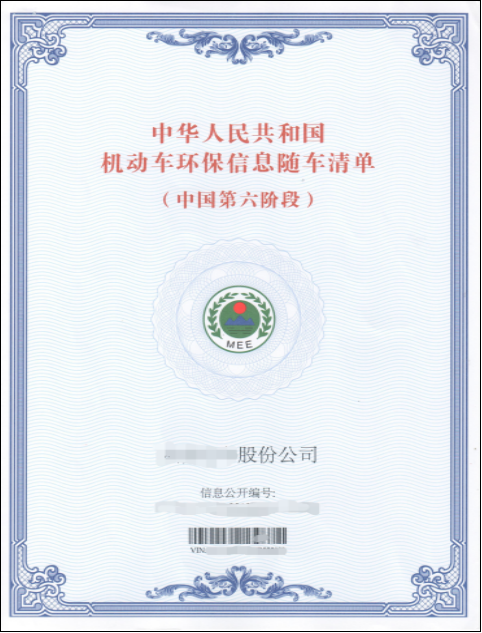 (三)机动车环保随车清单: