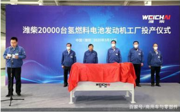 潍柴也早早布局了氢能动力,并已经取得了丰硕成果。2018年,潍柴全面启动燃料电池产业园建设项目,建成了两万套级产能的燃料电池发动机及电堆生产线,是目前全球最大的氢燃料电池发动机制造基地。2019年以来,潍柴先后在山东潍坊、聊城、济宁、济南等地批量投放氢燃料电池公交车。在潍柴的助力下,山东省建设了6座加氢站,7条公交运营专线,陆续投放氢燃料电池公交车超过200辆,累计运行达130万公里,是全球氢燃料公交线路最密集的区域之一。潍柴也由此成为了全球氢燃料电池商用车区域性示范投放产品最多的企业之一。目前潍柴集团已经建立起“单电池-电堆-发动机-整车”的氢燃料商用车全产业链。