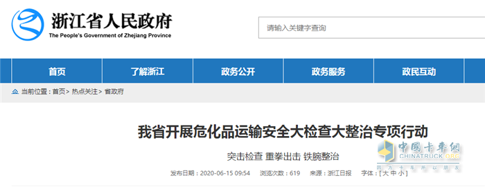 浙江省作为危化品生产、经营、使用大省,危化品运输安全面临严峻考验。全省交通运输系统要以“三个地”和“重要窗口”的使命担当,坚决打赢危化品运输安全攻坚战,切实保护人民生命安全和身体健康。坚持全覆盖、零容忍,对全省所有危险货物道路运输企业、水路运输企业、港口码头、港内储罐、危货运输车辆、船舶以及从业人员进行全方位、立体式检查,确保不漏一家企业、不漏一辆车辆、不漏一个驾驶员。集中力量开展危化品源头充装、常压罐车运输管理等专项整治行动,将风险和隐患消灭在萌芽中,确保不发生重特大事故。