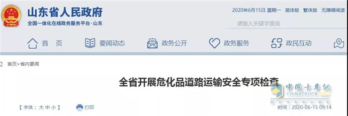 根据山东省委、省政府领导批示要求,深刻吸取事故教训,山东省政府安委会办公室6月14日发布加强危险化学品道路运输安全管理的紧急通知,要求在山东全省立即开展危险化学品道路运输安全专项检查。