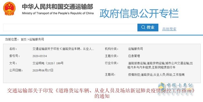为深入贯彻落实中央应对新冠肺炎疫情工作领导小组会议精神,以及《国务院应对新型冠状病毒感染肺炎疫情联防联控机制关于做好新冠肺炎疫情常态化防控工作的指导意见》(国发明电〔2020〕14号)部署安排,切实做好道路货运行业新冠肺炎疫情防控工作,坚决遏制疫情通过道路货物运输途径传播,部制定了《道路货运车辆、从业人员及场站新冠肺炎疫情防控工作指南》(以下简称《指南》)。