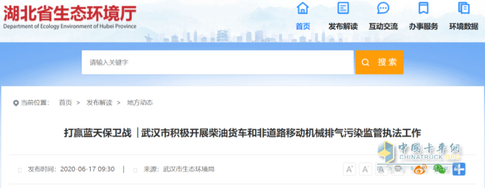 为打赢蓝天保卫战,武汉市2020年将柴油货车和非道路移动机械排气污染作为监管执法重点对象。武汉市生态环境局于2020年5月6日制定出台《2020年武汉市柴油货车和非道路移动机械排气污染监管执法工作方案》。