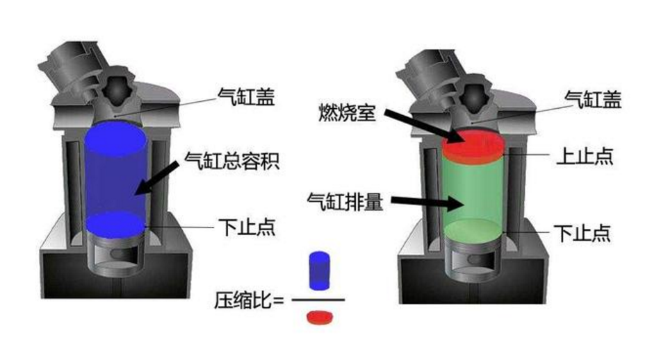 计算公式为:气缸总容积÷(气缸总容积-活塞往复扫过的体积)=压缩比。这一参数的数值越大等于活塞扫过的体积越大,通俗的描述就是活塞把空气压缩变小的程度更高;空气被压缩必然会产生高温,可理解为分子运动摩擦产生的热能。而压缩比与汽油的「能量密度」有直接关联,因为不同的压缩程度等于不同的极限高温,不同的温度在相同的时间内蒸发不同密度的燃油效率会一样吗?