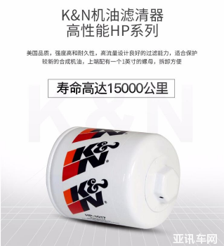 KN机油滤清器被称之为是“全方位的机油堡垒”,滤芯材质先进,过滤性、进气量和容尘量有保证,长效耐用,且其高性能HP系列的使用寿命长达15000公里。