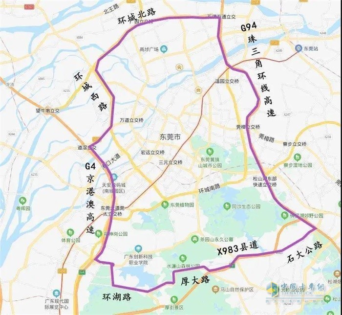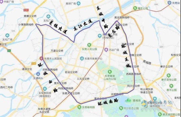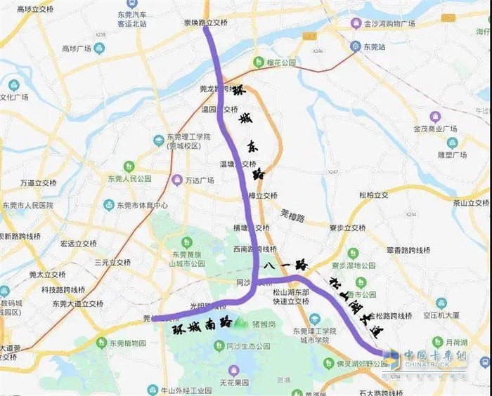 5.环城南路(莞长立交)一环城东路(崇焕立交),八一路(同沙立交)一松山湖大道(石大立交)路段,每天7:00-20:00禁止重型载货汽车通行。