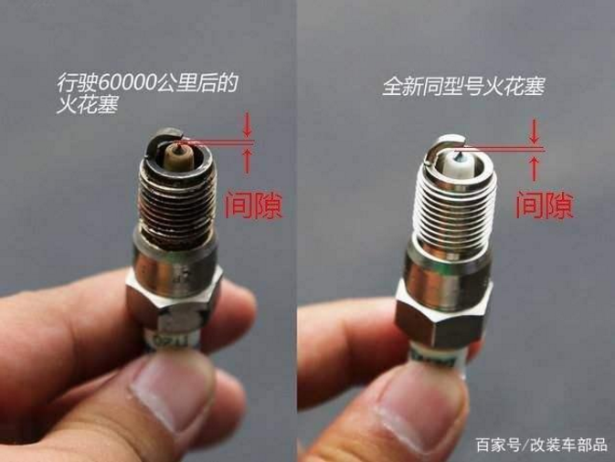 火花塞的电极间隙,火花塞电极间隙就是指侧电极和中心电极之间的距离。基本上火花塞间隙从0.6mm到1.6mm不等,简单说,间隙越大,点火能力越大,但是这个间隙是有一个极限值的,一旦超过极限值,那么点火能力就会起到反作用了。简单来说,目前我们在升级火花塞的时候,肯定会选择铱金和铂金火花塞,这类火花塞的一般都可以做的非常细,间隙要求相对比较低,这类火花塞在比较新的情况下,往往点火效率非常高,但是在使用一段时间之后一般在2万公里之后,中心电极消耗过大,间隙变大,点火依旧没有问题,但是往往点火效能会降低,出现一些油耗增加的情况。这也就是我们一般都会推荐改装车更换火花塞的周期缩减的原因。