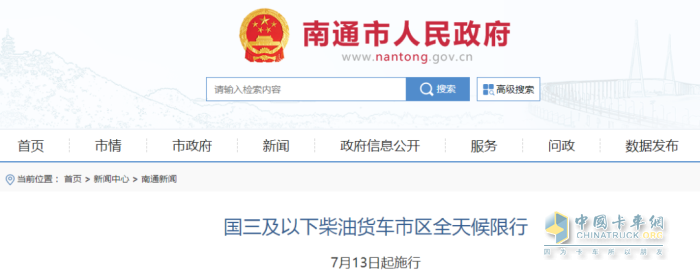 2020年是环境治理至关重要的一年,国六标准已正式登场。越来越多的省市开始对国三及以下排放的运营柴油货车进行淘汰、报废,南通市为响应环境治理要求,将于2020年7月13日开始对国三及以下排放标准的货车进行全天24小时限行。