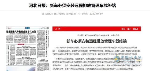 货车司机们注意了,河北省生态环境厅发布通知要求:2020年11月1日起,重型车辆新车必须安装远程排放管理车载终端。