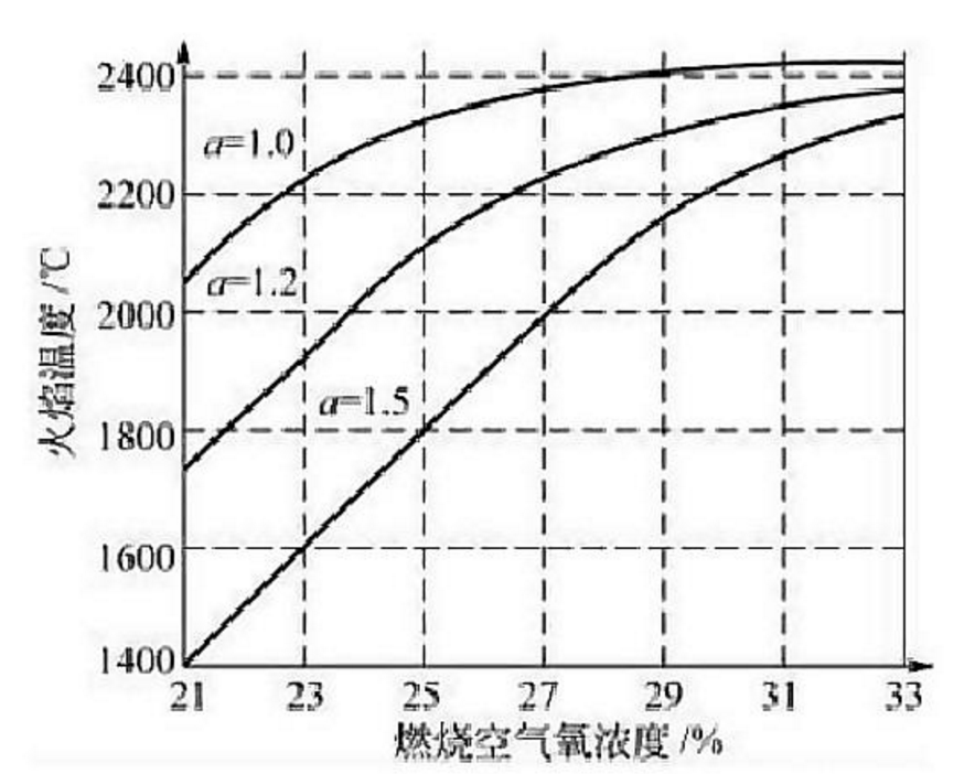 图1:氧浓度与燃烧火焰温度的关系