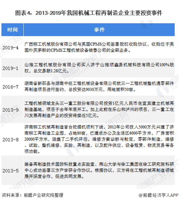 再制造产业工程机械再制造方面,随着基础建设的拉动,工程机械市场需求量在未来一段时间内还将持续走高,而高需求带来的是更多的二氧化碳排放。工程机械作为内燃机产品的第二大使用行业,虽然工作范围仅限于工地,但由于其密度大,排放情况又劣于汽车,对环境的污染更为严重,我国工程机械行业向低碳经济的转型呈不可逆转趋势。企业在工程机械再制造市场中也逐渐活跃,2019年广西柳工收购CPMS工程机械设备销售公司,CPMS公司对柳工在传统的土方机械应用,拆除和设备租赁等许多领域发展中将发挥重要作用。