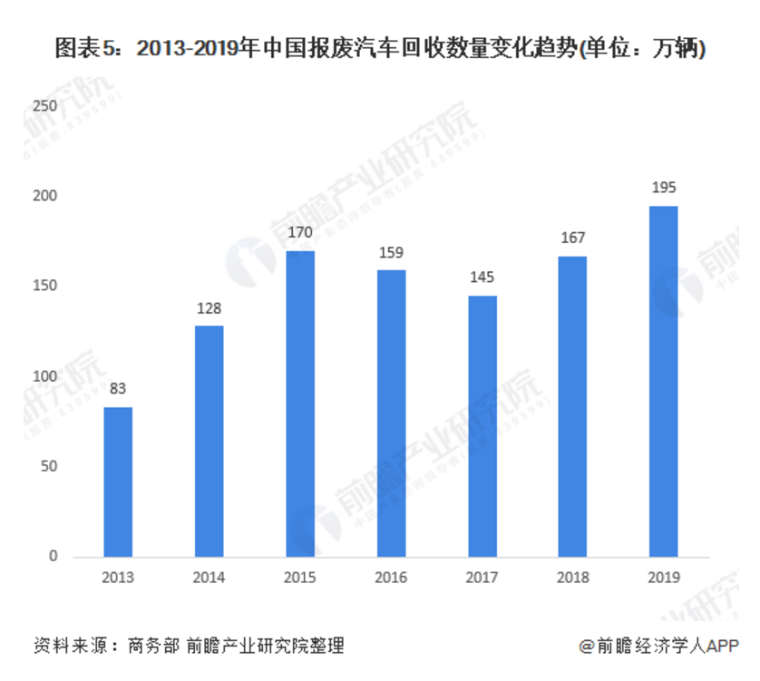 再制造产业中汽车零部件再制造方面,汽车发电机、起动机再制造是通过对回收的废、旧汽车发电机,起动机的拆解,表面处理,再加工,零部件检测,再装配,整机测试等工序完成再制造生产全过程。根据商务部数据显示,2014-2019我国报废汽车回收数量呈上升趋势。2019年我国正规途径报废汽车回收数量仅195万辆,同比增长16.8%,报废率不足20%。意味着汽车零部件再制造有较大市场。