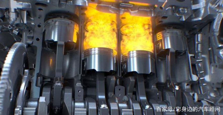 发动机在压缩冲程活塞把空气或者空气与燃料的混合气剧烈压缩,这时候气缸内压力很大,然后混合气燃烧,产生非常大的膨胀力,这个力推动活塞向下运动,活塞再通过曲轴连杆把这个推力转化成发动机的输出动力。