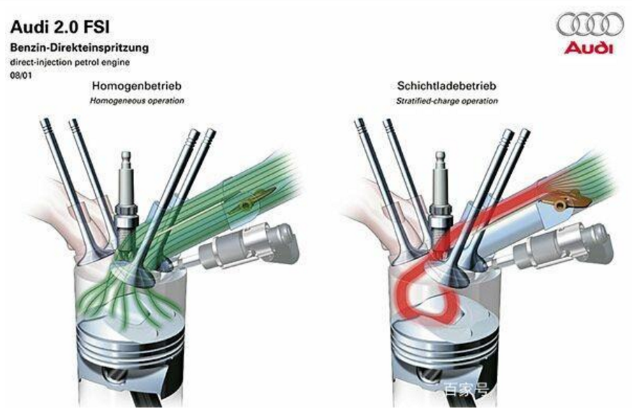 汽油机中的“稀薄燃烧”技术其实就是利用特殊设计过造型的燃烧室和活塞把汽油蒸汽尽量汇聚在火花塞周围,这样火花塞周围混合气浓度合适,火花塞可以引燃。而燃烧室内其他地方混合气稀薄,可以实现空气过量情况下正常燃烧,大大降低油耗。