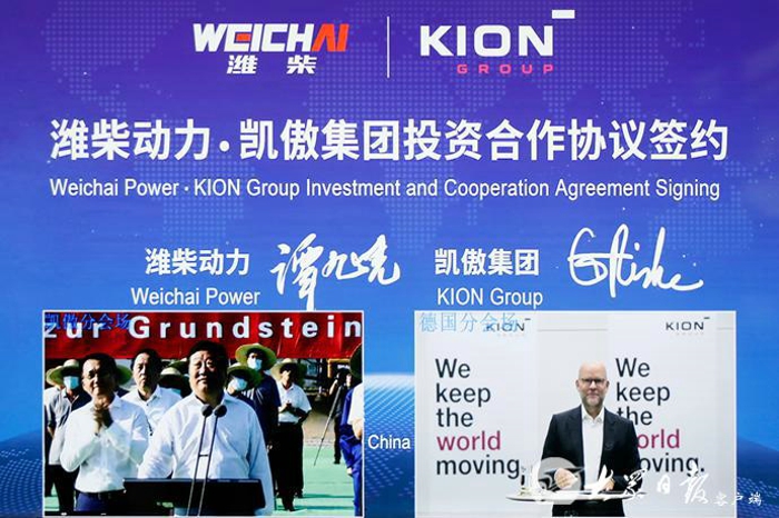 活动的当天,谭旭光与凯傲集团首席执行官高登?李斯克在线签署潍柴动力与德国凯傲投资合作协议。谭旭光在现场表示:“这是一个历史性的时刻,充分体现出凯傲集团与潍柴动力之间牢固紧密、互信互赖的合作伙伴关系。自2012年以来,我们在携手走过的数年中取得了丰硕的成果。智能叉车项目将是这条增长道路上的又一里程碑。”