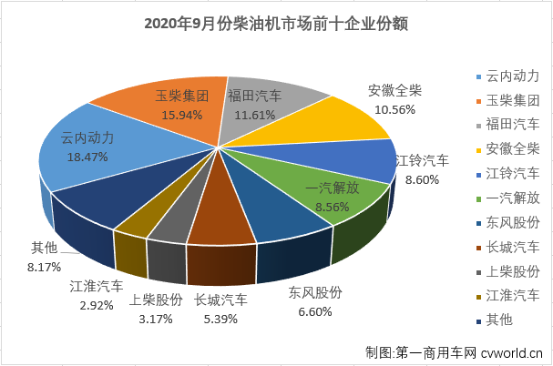 1-9月份,云内在车用柴油机市场的累计份额达到17.01%