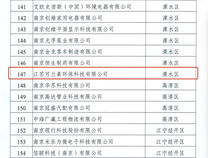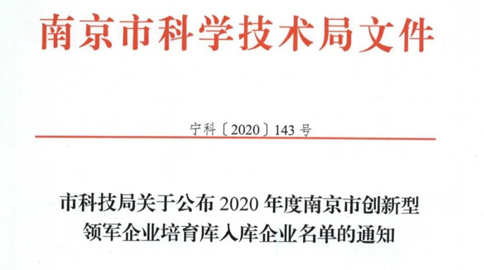 2020年11月26日获悉,可兰素入选“2020年度南京市创新型领军企业培育库”!