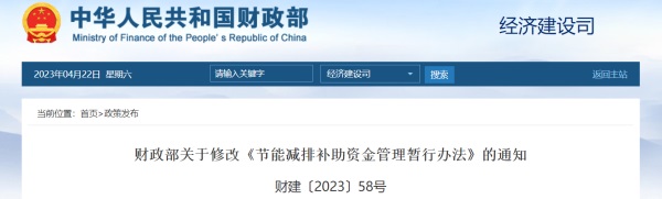 近日,国家财政部发布了关于修改《节能减排补助资金管理暂行办法》的通知。