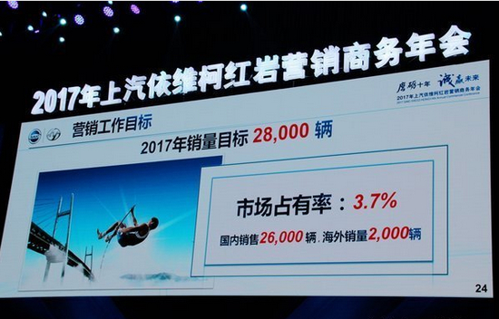 面对2017年的重卡市场,上汽红岩常务副总、营销公司总经理施轶才认为,重卡销量大概在75万辆,基本和2016年的市场持平、略有增长。然而上依红对自己的销量目标制定在2.8万辆,相比于2016年的销量成绩有78.34%的增幅——在各重卡厂家中,上依红的增幅是最高的。这意味着,2017年上依红需要比别人跑的更快才能完成目标。