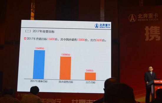 面对2017年的重卡市场,北奔将销量目标定在1.56万,基本和2016年的目标相当。2017年,北奔得加油了!