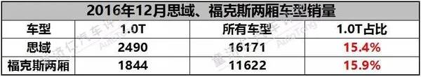 搭载1.0T三缸机的车型有很多,笔者选取了两款典型性车型,分别是一度走在加价提车风口浪尖的本田思域,另一款则是较早推出1.0T的福特福克斯。从2016年12月的销量数据来看,思域1.0T共售出2490辆,占比12月总销量的15.4%(其中,1.5T为13681辆),相较而言,福克斯两厢版1.0T的销量占比也达到了15%以上(除了1.0T,还有1.5T和1.6L自然吸气车型)。