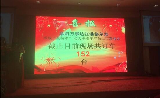 2017年2月19日,阜阳市万事达汽车销售有限公司在安徽省阜阳举行了江淮格尔发搭载曼技术发动机牵引车上市推广会。本次推广会邀请了阜阳地区各物流公司、个体用户等在内的近180人参加。
