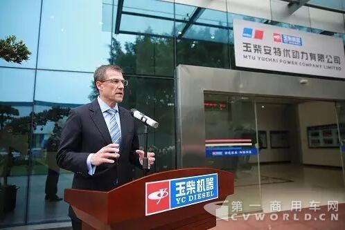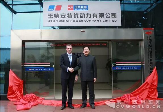 2月27日,玉柴与德国MTU合资建设的玉柴安特优动力有限公司在玉林揭牌运营,MTU母公司罗尔斯-罗伊斯动力系统有限公司总裁Andreas Schell与广西玉柴机器股份有限公司董事长晏平共同为合资公司揭牌,标志着中德两国著名发动机制造商的强强联合正式进入实际运营阶段,意味着玉柴的国际化步伐越走越稳健。