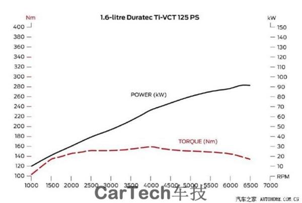 以福特福克斯为例,其搭载的1.6L自然吸气四缸引擎,峰值功率92kw(125ps),最大扭矩159N.m,在VVT的帮助下,扭矩平台很平坦,2000转即可输出最大扭矩的90%,功率输出则一直延续到6500rpm都毫不懈怠,一路上扬。这算是一台兼顾日常使用,偶尔激烈驾驶也不觉乏力的现代1.6L自吸引擎。