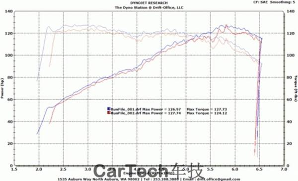福特福克斯搭载的1.0T三缸增压引擎,在测试台上跑出了127.7ps的最大功率,峰值扭矩则达到了约167N.m(124b-ft),扭矩功率双双超越了1.6L自吸引擎,所以不用担心1.0T动力不足的问题。细看1.0T外特性曲线,大约从2200rpm左右上到扭矩平台,一直持续到5500rpm开始衰减,最大功率点出现在5700rpm左右,到6000转以上开始严重下滑,也就是我们常说的后段乏力。
