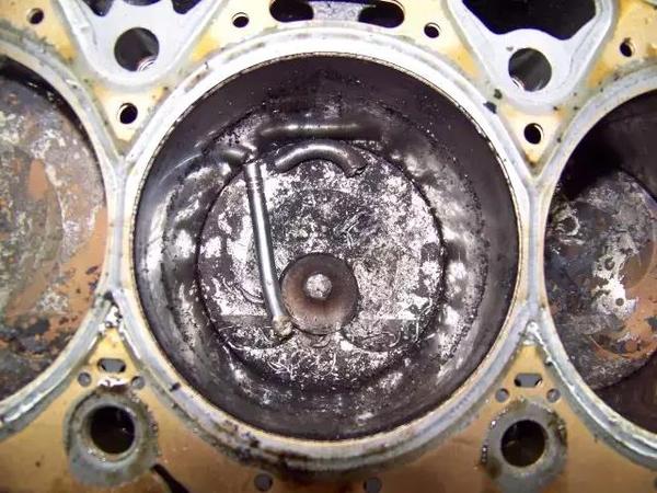 先来个火花塞烧熔、气门被卡断、整个气门掉进气缸的: