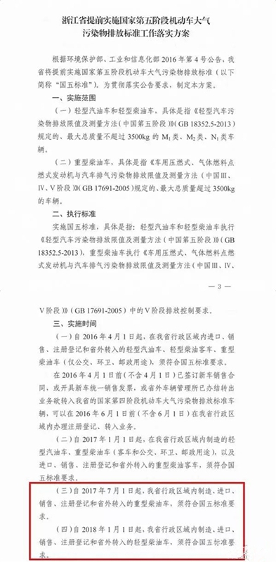 据了解,自2017年7月1日起,在陕西省行政区域内所有生产、进口、销售、注册和转入登记的重型柴油车、重型两用燃料车、重型单一气体燃料车,须符合“国五”排放标准要求。