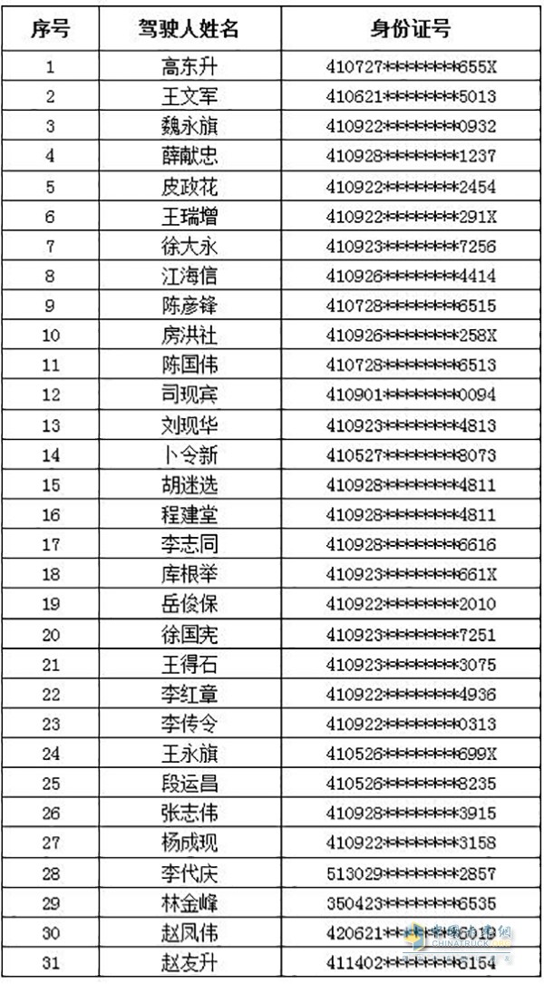 二、1年内违法超限运输超过3次的货运车辆驾驶人信息汇总表