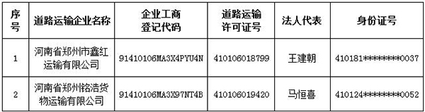 根据国家发展改革委、中国人民银行、交通运输部等36个部门联合签署的《关于对严重违法失信超限超载运输车辆相关责任主体实施联合惩戒的合作备忘录》,现对交通运输部门公布的严重违法超限超载失信当事人信息予以公布。详细相关信息附下,或见“信用交通”网站“交通运输领域失信公示”栏目。