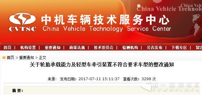 7月11日中机中心发布了关于轮胎承载能力及轻型车牵引装置不符合要求车型的整改通知。轮胎承载能力不符合要求的车型共有1935款,轻型车牵引装置不符合要求车型总计有434款。