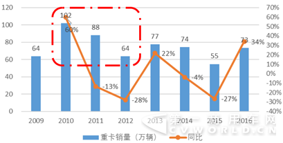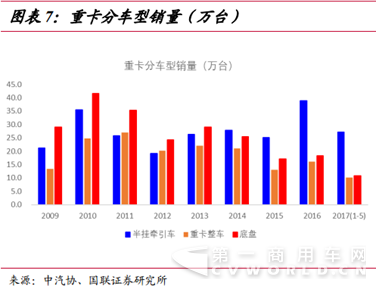 前有增量需求做引爆点,后有重卡更换周期需求做支撑,股价得以飞速飙升。前一波重卡购置高峰期是在2010-2012年,三年共计264万辆,年均近85万辆,重卡使用寿命为5-7年,这就意味着2010-2012年前后购置的车辆在2017-2019年报废,因此重卡的更换周期已经来临,这部分的需求将能为企业业绩提供强有力的支撑。