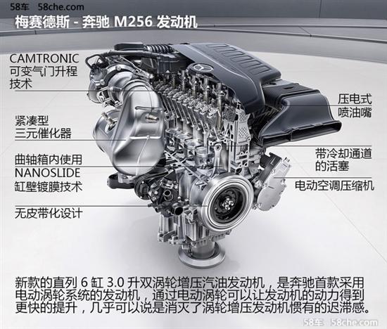 最新的M256是自1999年M104停产以来,时隔18年首次生产的奔驰直列6缸汽油发动机。(虽然奔驰99年停掉了直列6缸汽油发动机的生产,但直列6缸的柴油发动机到2005-2006年才停产)M256系列与M104除了同为直列6缸发动机外,其他相同点可能只有同为10.5:1的压缩比了,全新M256在回归直6阵营的基础上,进行了大幅的电气化改造,已经成为了一套可以称为Mild Hybrid的轻度混合动力系统。