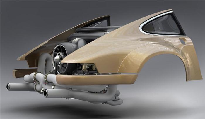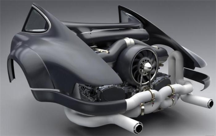 作为一名专业的发动机设计师兼工程师,William团队的Hans Mezger正与Singer探讨其改装计划,欲将一款保时捷风冷六缸水平对置发动机(an air-cooled flat-six Porsche engine)安装到该车的后部末端(见以下各图)。