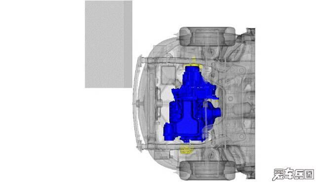 为了防止发动机向驾驶室移动,设计人员为发动机设计一个将发动机横向移动的力转变成纵向移动的机关,一旦汽车受到前方撞击,发动体支架便会向下移动而不是直接撞向驾驶室。