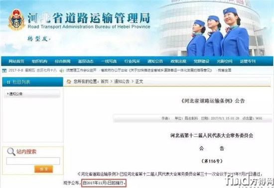 2017年7月28日河北省第十二届人民代表大会常务委员会第三十一次会议通过了《河北省道路运输条例》。
