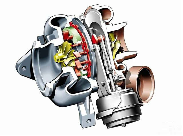 废气涡轮增压的动力来源是燃烧产生的废气,它有两个类似于风扇叶片的部件,叫做涡轮和叶轮。涡轮装在排气道内,叶轮装在进气道内,涡轮和叶轮靠一根轴连在一起,会同时旋转。涡轮堵在了排气道内,所以废气需要推开涡轮才能排出去,废气时时刻刻都在推动涡轮,涡轮在里面就会转动起来。涡轮转动了,带动同轴的叶轮也开始旋转。因为叶轮是安装在进气道内的,所以就会对空气进行压缩。