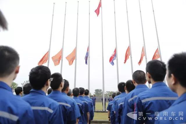 8时08分,迎着微风细雨,在嘹亮的国歌声中,联合动力的升旗仪仗队迈着铿锵有力的步伐走向旗杆,现场人员全体肃立,向着国旗行注目礼。《玉柴建设者之歌》慷慨激昂,充满了玉柴人斗志,伴随着歌声,玉柴股份、联合动力及联合卡车的旗帜徐徐升起,飘扬在联合广场上空。